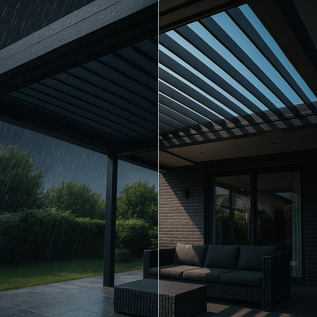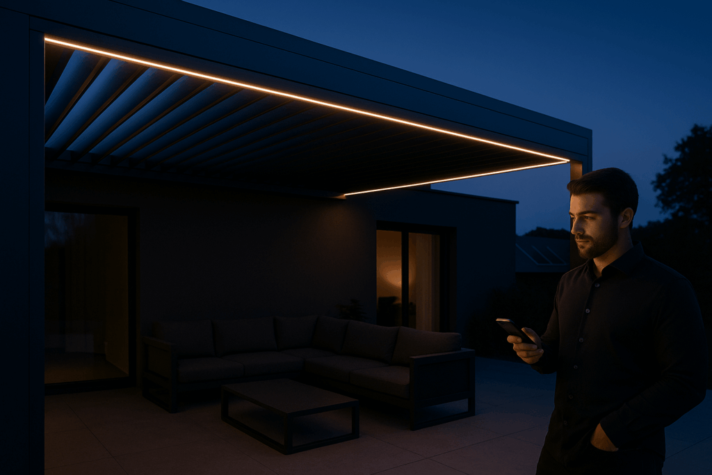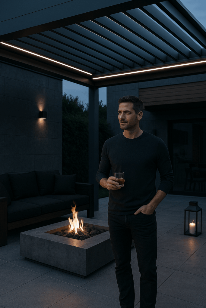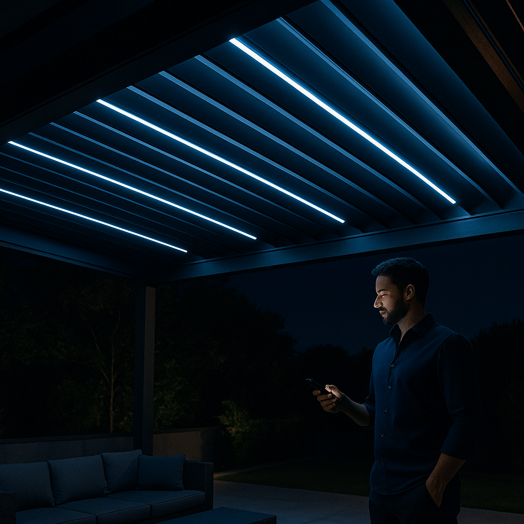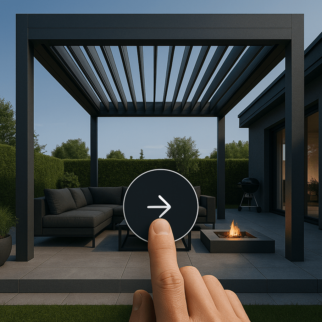 Dieses Lamellendach ist mehr als ein Dach – es ist dein persönliches Control Center im Freien. Aluminium in Wunschfarbe, präzise Verarbeitung, Technik auf höchstem Niveau. Robust gegen Wind, Regen und Sonne – edel im Design, kompromisslos in der Funktion.
